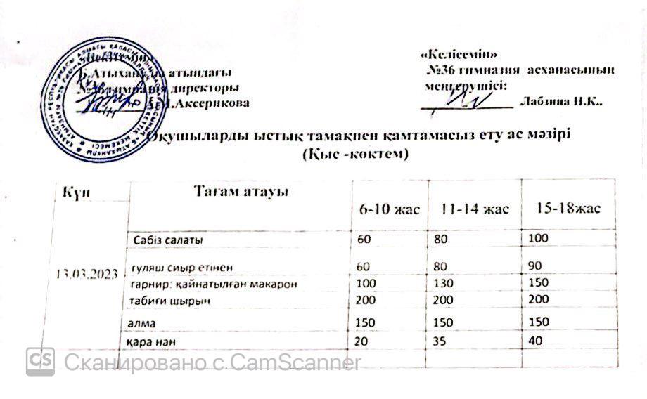 Тамақтандырудың ұйымдастыру жұмыс жоспары 2024