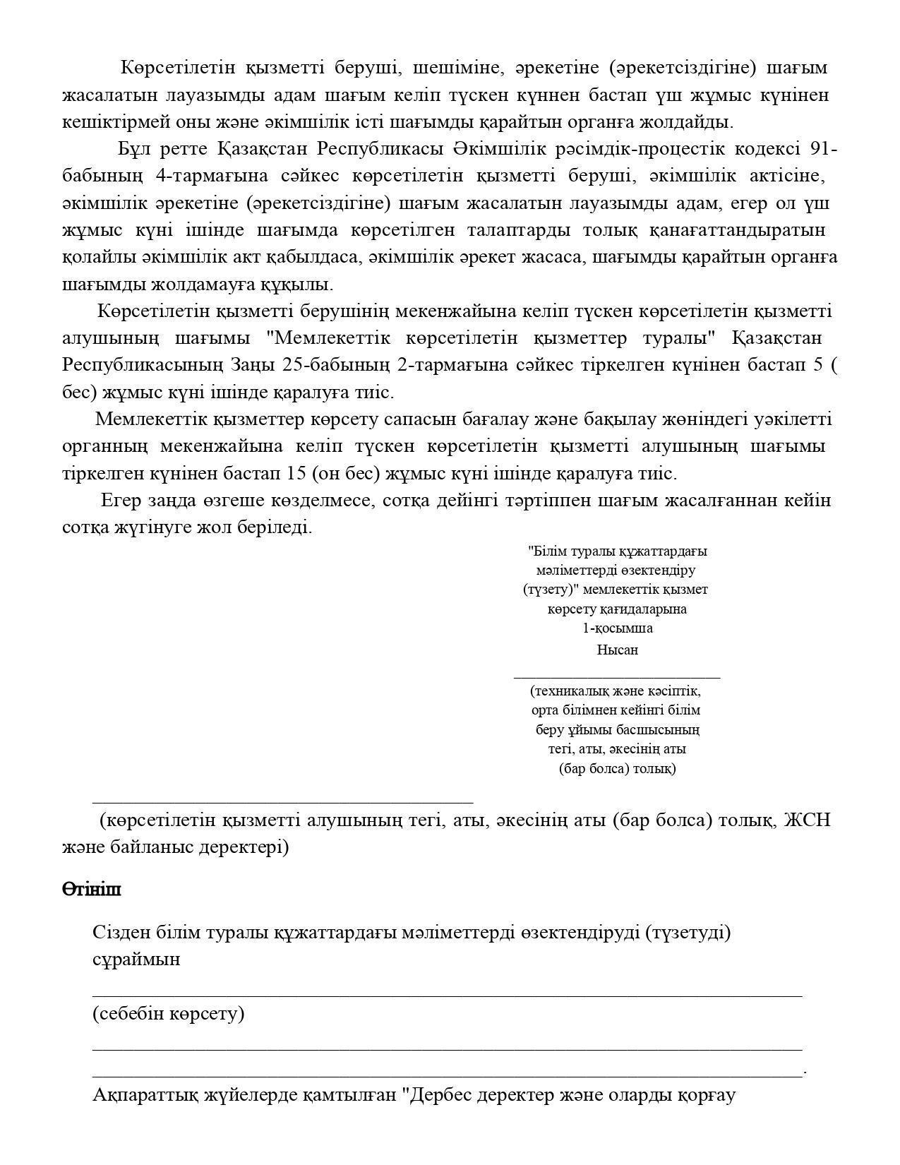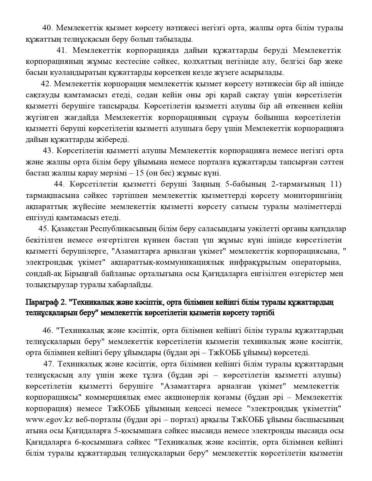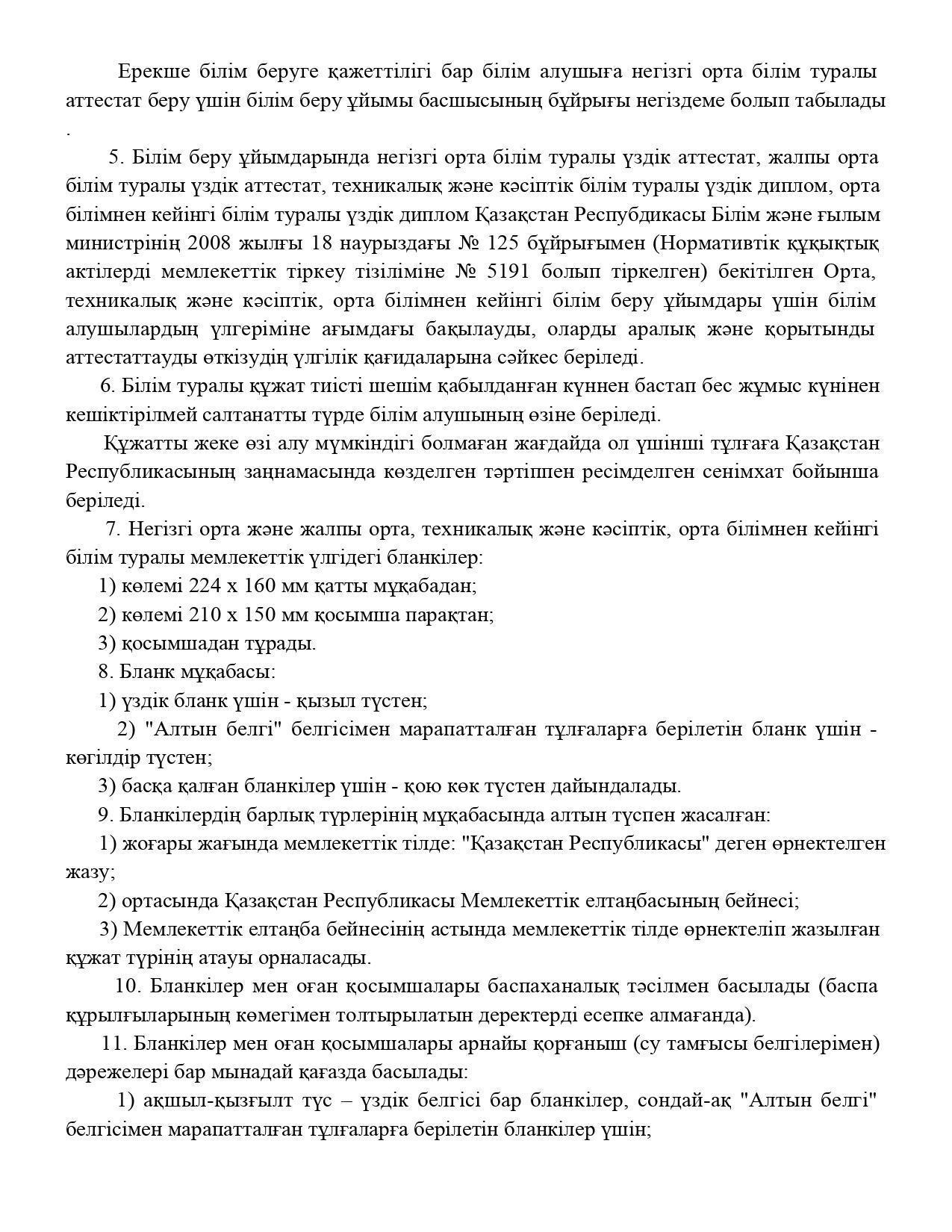 Гимназия №36 г. Алматы » Мемлекеттік қызметтер » Орта, техникалық және кәсіптік, орта білімнен кейінгі білім туралы құжаттардың түрлерін, орта, техникалық және кәсіптік, орта білімнен кейінгі білім туралы мемлекеттік үлгідегі құжаттардың нысандарын ж/е оларды есепке алу мен беру қағидалары