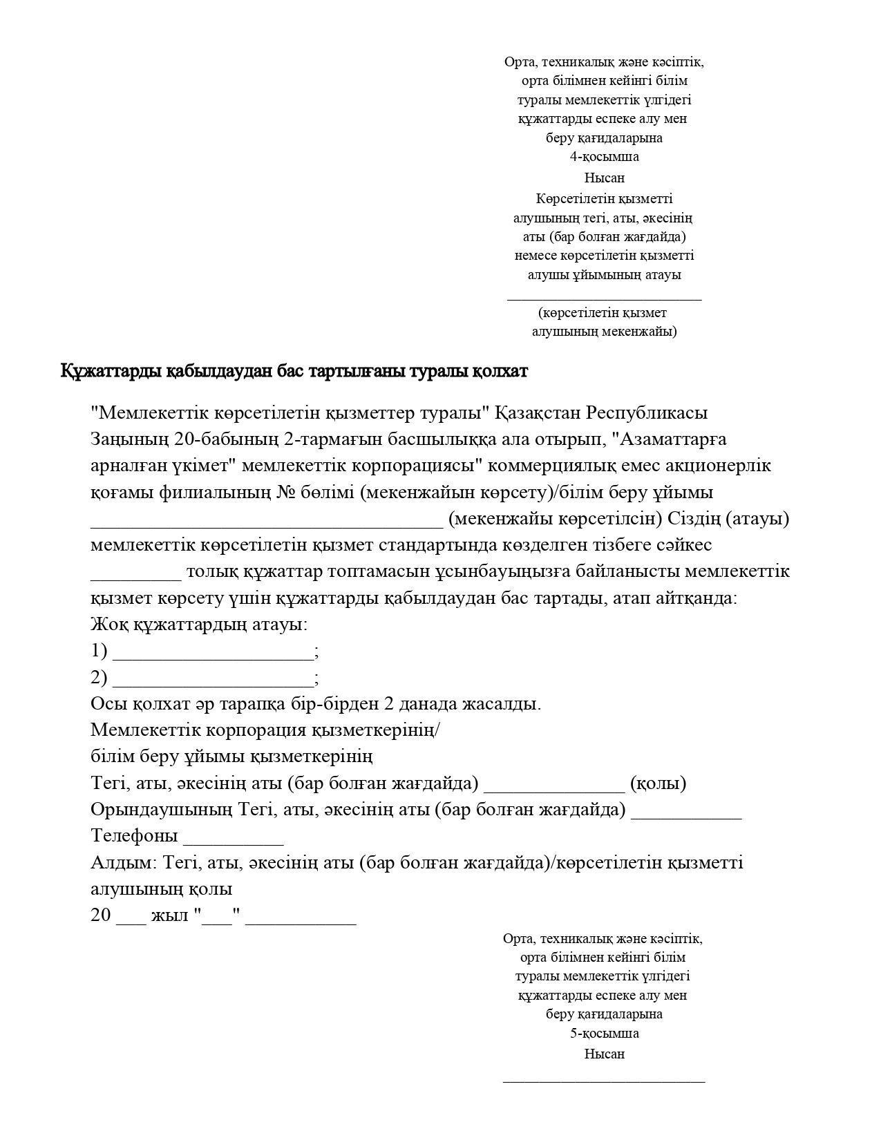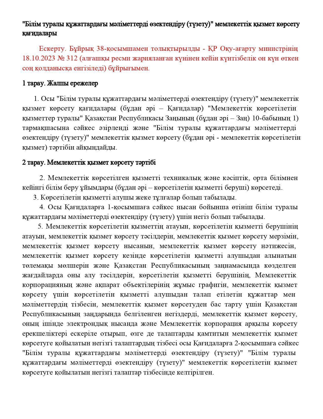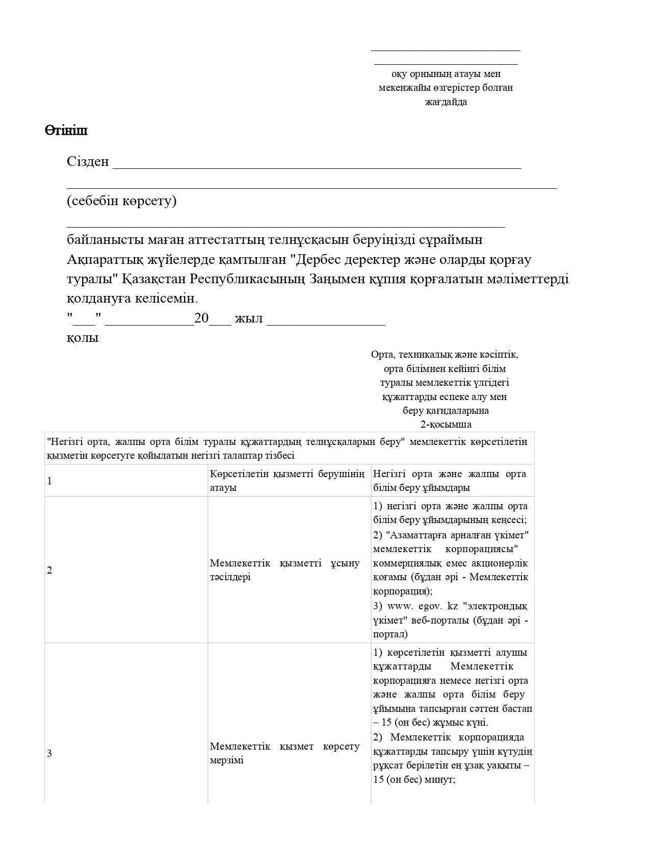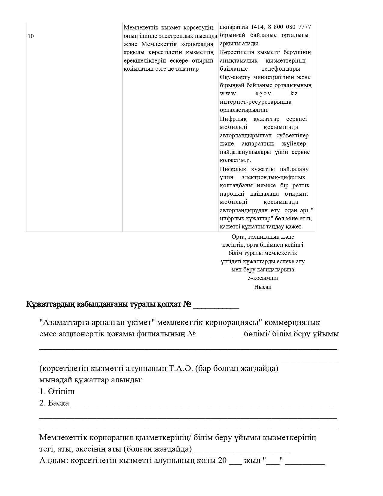 Гимназия №36 г. Алматы » Мемлекеттік қызметтер » Орта, техникалық және кәсіптік, орта білімнен кейінгі білім туралы құжаттардың түрлерін, орта, техникалық және кәсіптік, орта білімнен кейінгі білім туралы мемлекеттік үлгідегі құжаттардың нысандарын ж/е оларды есепке алу мен беру қағидалары