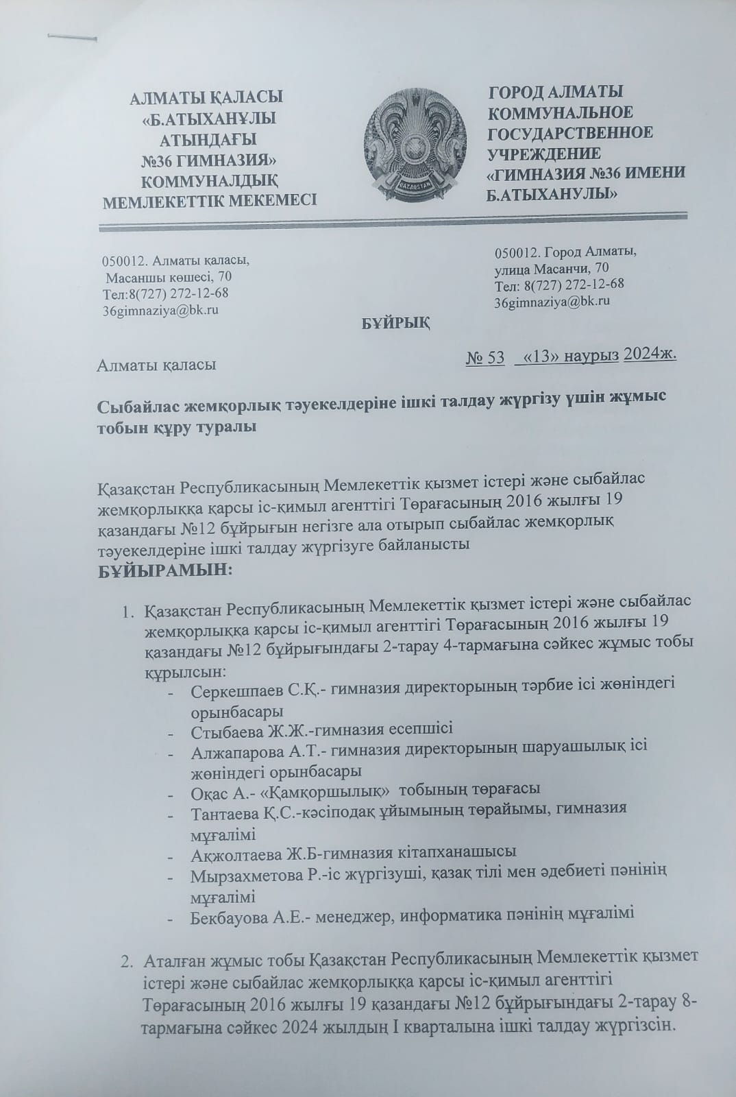 04 қараша 2024 0 1 2 3 4 5 Сыбайлас жемқорлық тәуекелдеріне ішкі талду жүргізу үшін жұмыс тобын құру туралы Осы беттің QR-коды:QR-код этой страницы: