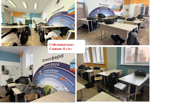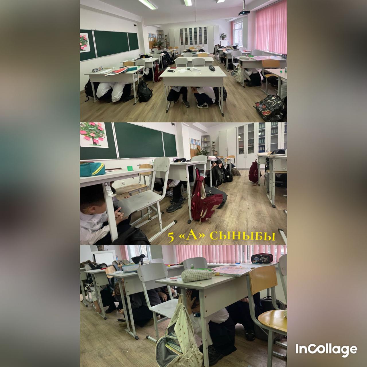 1 наурыз-Дүниежүзілік Азаматтық қорғаныс күніне гимазияда сейсможаттығу өткізілді.