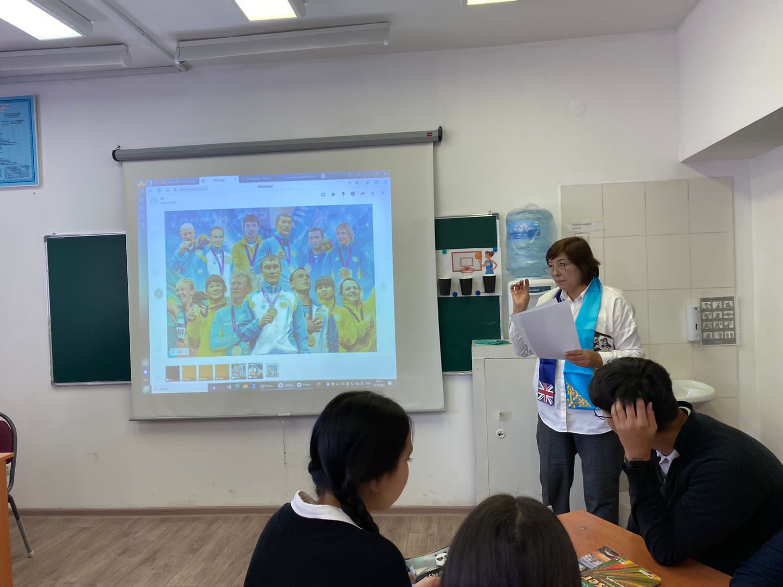 13.10.2023 жылы 9"ә" сыныбымен "The Olympic Champion for Kazakhstan " тақырыбында ашық сабақ өткіздім.Оқушылар ашық сабаққа белсене қатысты.Оқушылар ашық сабақта мемлекетімізді әлемге паш етіп туымызды биікке көтеріп жүрген спортшылардың түрлері мен,олардың Қазақстанда спорттың дамуына еңбегін сіңірген жеңістері мен танысты.Ашық сабақ үстінде "Hot chair","Aquarium" "Jigsaw" әдіс-тәсілдері мен қызықты ойындар ойнатылды."Basketball " әдісімен оқушыларды бағалап, "Letter to Teacher " тәсілімен сабақты қорытындыладық.