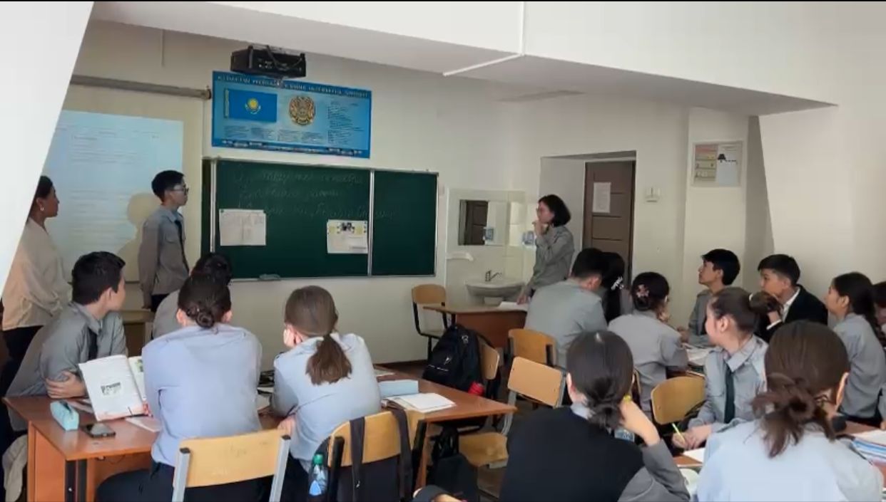 Сегодня в школе ученики 11 «Б» класса с учителем русского языка и литературы Баймухамбетовой Г.К. провели урок на тему «Главные герои поэмы А.С.Пушкина «Евгений Онегин ».