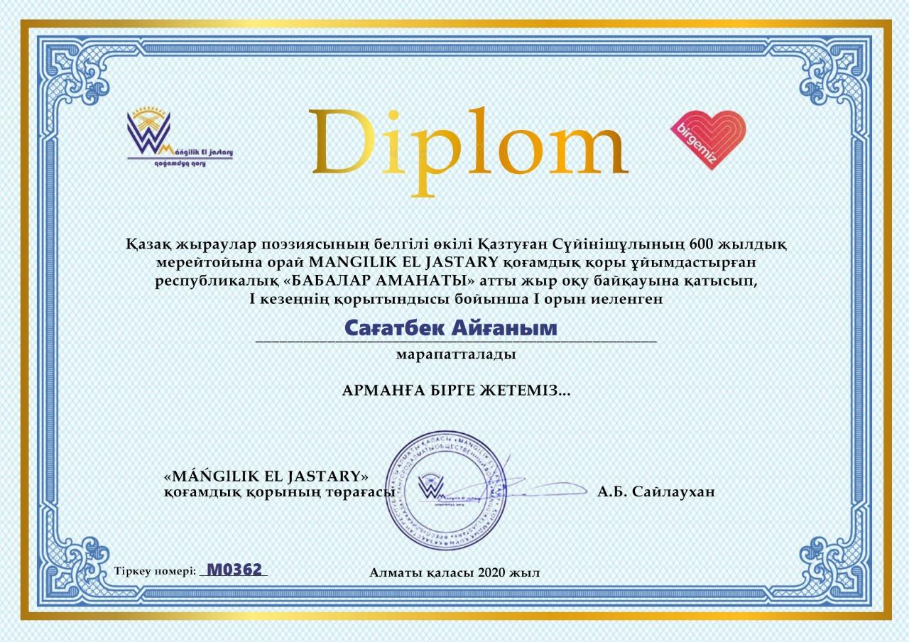 Қазақ жыраулар поэзиясының белгілі өкілі Қазтуған Сүйінішұлының 600 жылдық мерейтойына орай MANGILIK EL JASTARY қоғамдық қоры ұйымдастырылған республикалық "БАБАЛАР АМАНАТЫ" атты жыр оқуына қатысып орын алған шәкірттеріміз бен оларды дайындаған ұстаздарымыздың