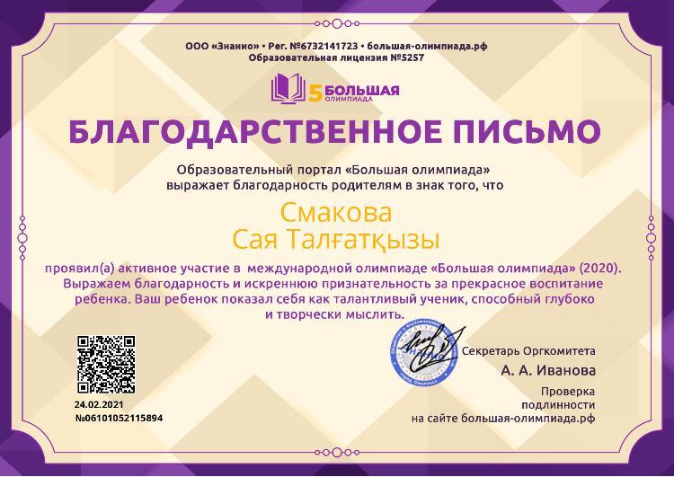 25 ақпан 2021 0 1 2 3 4 5 Орыс тілі мен әдебиеті пәнінен Халықаралық олимпиада жеңімпаздары Осы беттің QR-коды:QR-код этой страницы: