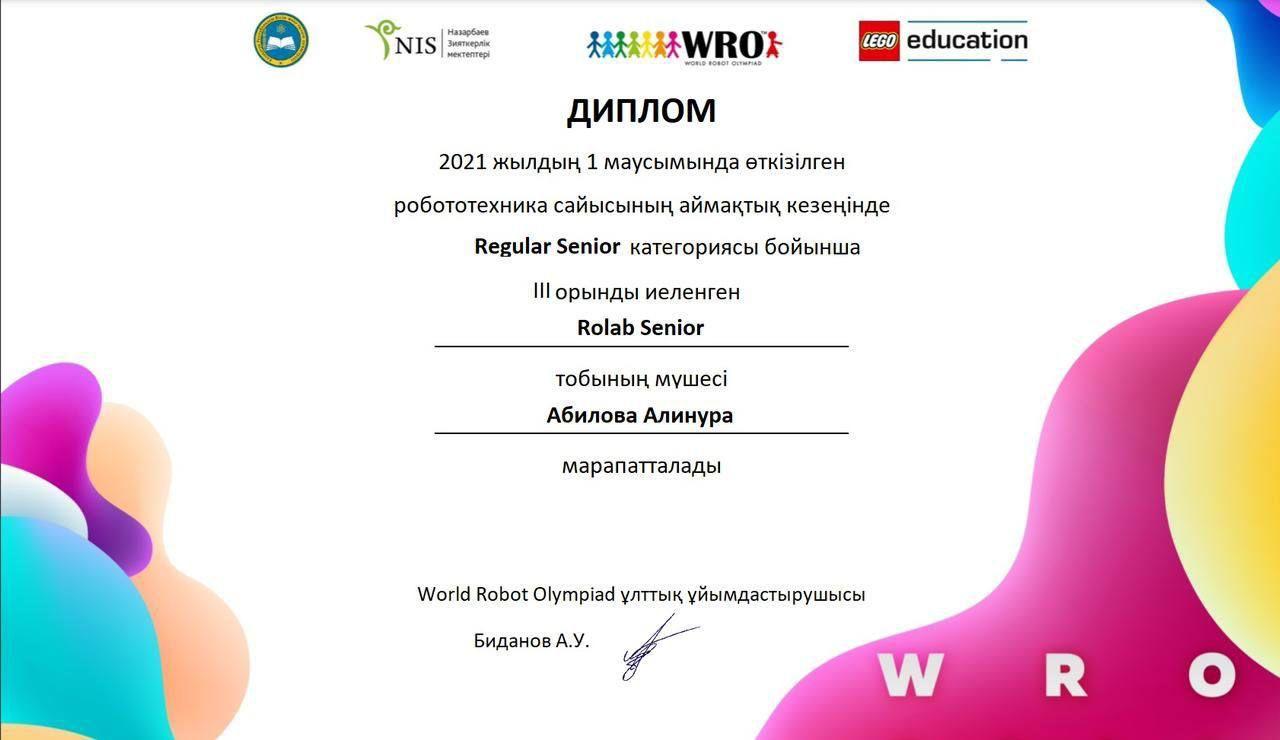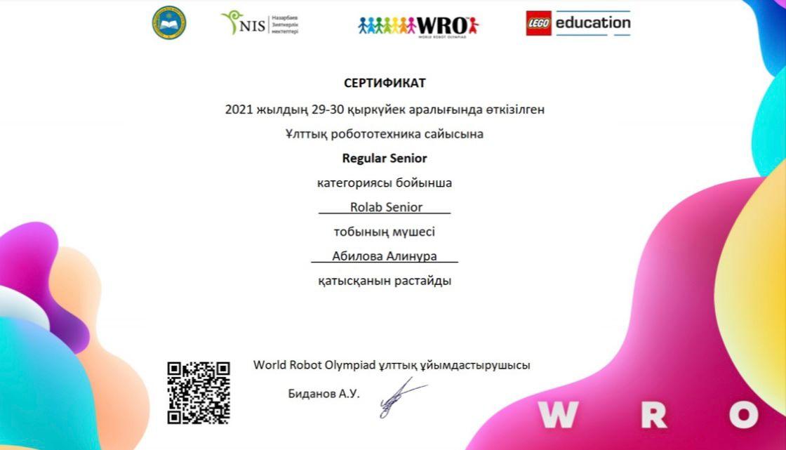 11 қазан 2021 0 1 2 3 4 5 Гимназия оқушыларының жетістіктері 2021 жылдың 1 маусымында ұйымдастырылған Ұлттық робототехника сайысының жеңімпазы 10 "Б" сынып оқушысы Абилова Алинура. Құттықтаймыз!!! Осы беттің QR-коды:QR-код этой страницы: