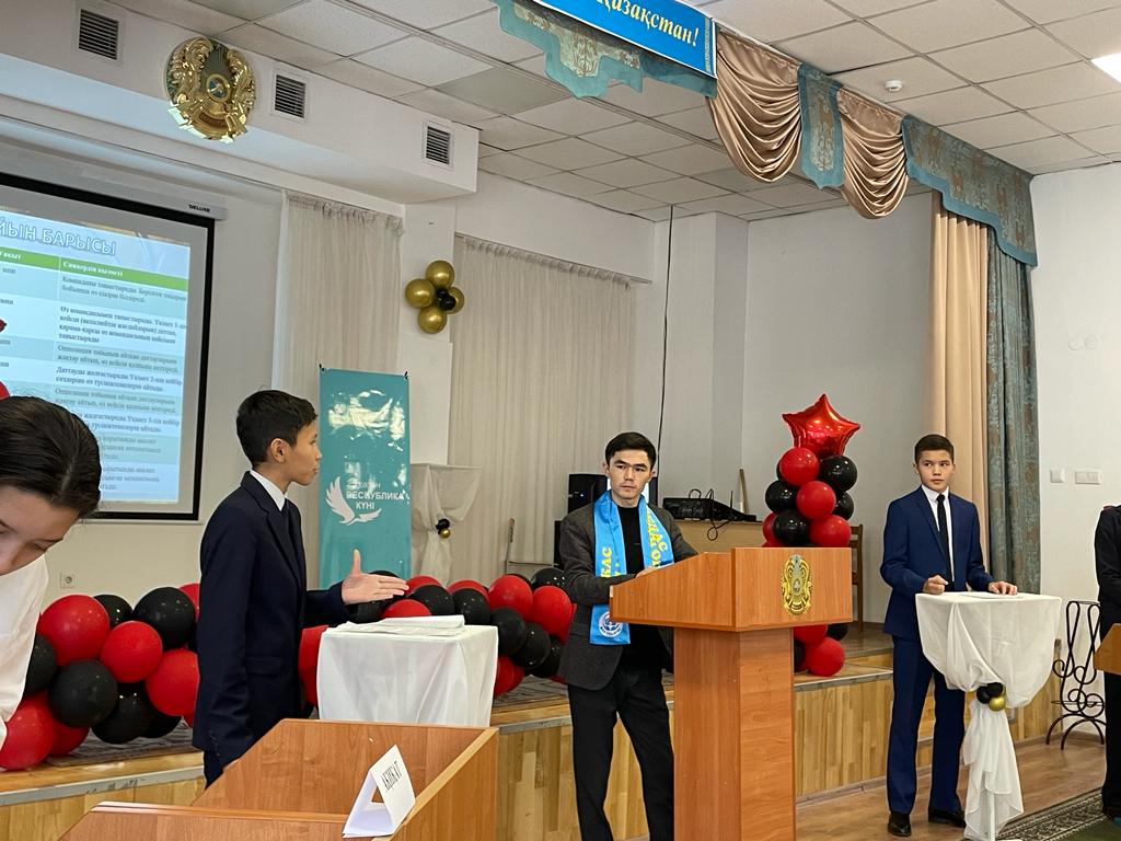 Мектебімізде Республика күніне орай 10-сыныптар арасында "Патриоттық рух және Қазақстан жастары" тақырыбында дебат пікір-талас ойыны өтті. Мақсаты: оқушылардың патриоттық, ұлтжандылық қасиеттерге, тарихи құндылықтарға деген ойларын қозғау. Сөз шеберлігін, өз пікірін анық айтып, дәлелдеме келтіру қабілеттерін дамыту.