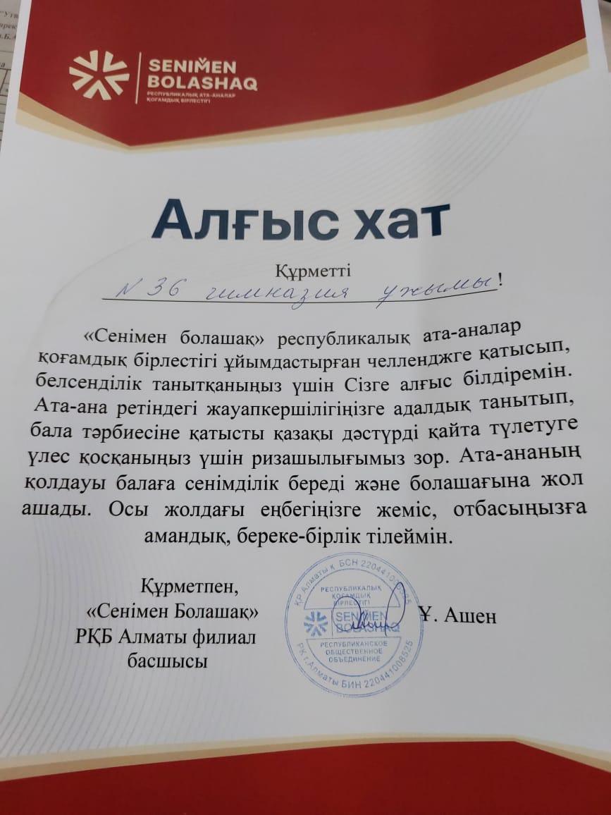 Б.Атыханұлы атындағы №36 гимназияда