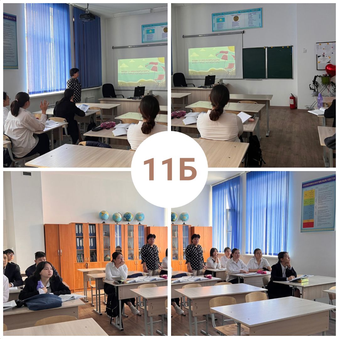 Алмалы ауданы Төтенше жағдайлар департаментінің "Судағы қауіпсіздік" акциясына орай 1-11 сыныптарда ашық сынып сағаттары өткізілді. Мақсаты: Суға түсу кезіндегі қауіпті жағдайлардың алдын алу және қауіпсіздік ережелерін сақтау.