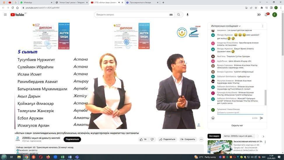 Б.Атыханұлы атындағы №36 гимназияның 5 "Ә" сынып оқушысы Есбол Аружан математика пәнінен "Алтын сақа" Республикалық олипиадасынан 2- орын иеленді марапаттау онлаин форматында ютуб тікелей эфирде өткізілді. Ақылды Аружан оқушымыздың жетістігі құтты болсын! Жетекшісі математика пәнінің мұғалімі Исабаева А.Н