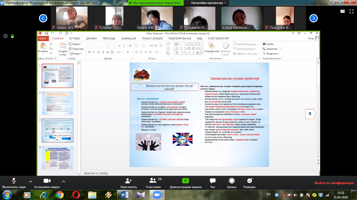 Алматы қаласындағы Педагогикалық шеберлік орталығы (ПШО) Б.Атыханұлы атындағы №36 гимназияның мұғалімдерімен "Қашықтықтан оқытуды ұйымдастыру ерекшеліктері" тақырыбында вебинар жүргізді. Педагогикалық шеберлік орталығының тренері Толықбаева Ғалия Нұрманқызы бастаған вебинарда "Қашықтықтан оқытуды қалай тиімді ұйымдастыру қажет және сабақ жоспарлау ерекшеліктері туралы айтылды. Алдағы уақытта осы сынды конференцияларды №36 гимназия мұғалімдері тірек мектеп ретінде магниттік мектептердің мұғалімдеріне өткізуді жоспарлауда.