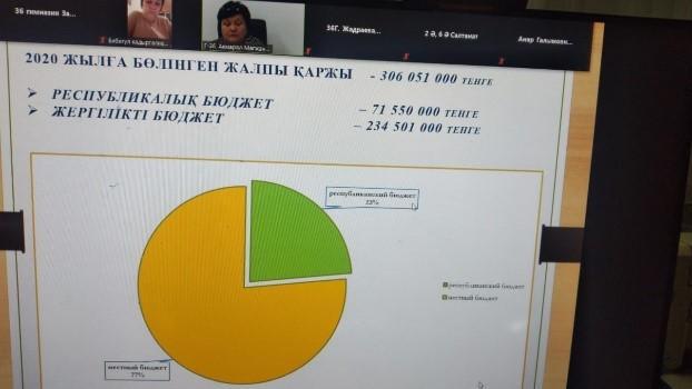 Екінші мәселе бойынша 2020 жылдың ІІІ кварталында бюджеттен бөлінген қаржының кіріс – шығыс есебі тыңдалды. Слайдтармен қаржының қалай жұмсалғандығы көрсетілді. Ата –аналарға түсінікті болды.