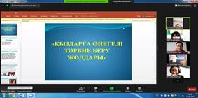 12. 02.2021 жылы гимназиямыздың 9 "А" Сынып оқушыларымен " Жыныстық тәрбие" тақырыбында онлайн Zoom платформасында қыздар жиналысы өтті. Жиналысты ұйымдастыруға Қазақ ұлттық қыздар универсиетінің "Әлеуметтік педагог және өзін-өзі тану" мамандығының 4 курс студенттері атсалысты. Жиналысқа директордың тәрбие ісі жөніндегі орынбасары Э.Ж. Исахметова, сынып жетекші С. Алимхожаева, педагог -психолог Н.Н. Жадраева, әлеуметтік педагог У. Мүтәліпқызы қатысып, қосымша ақпараттармен бөлісіп, қыздар тәрбиесі жөнінде маңызды ақпарат беріп, ерте жүктілікті болдырмау және оның алдын-алу мақсатында моральдық және әлеуметтік, медициналық факторларды жіктеп көрсетіп, қыз тәрбиесі, ұлттың тәрбиесі екендігін түсіндірді. Жиналыста оқушылар өз ойларын білдіріп, мұқият тыңдап, жауапкершілік танытты.