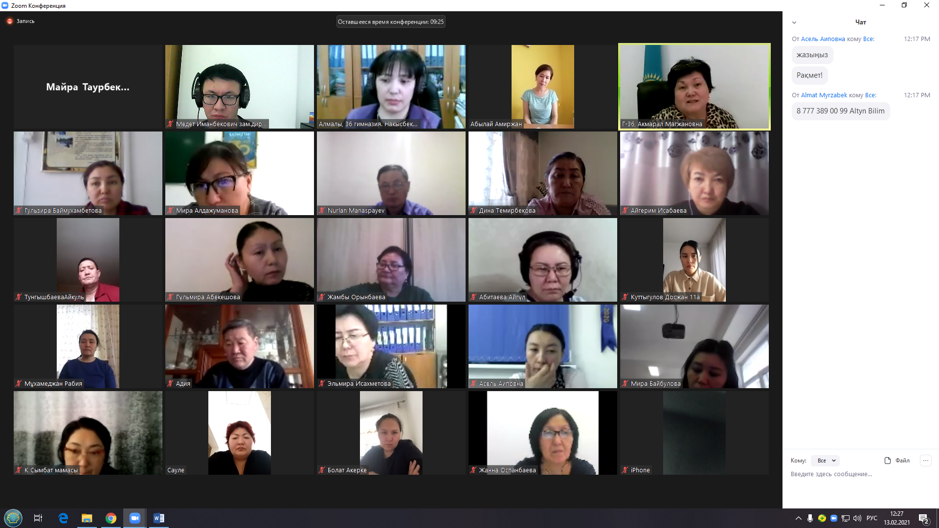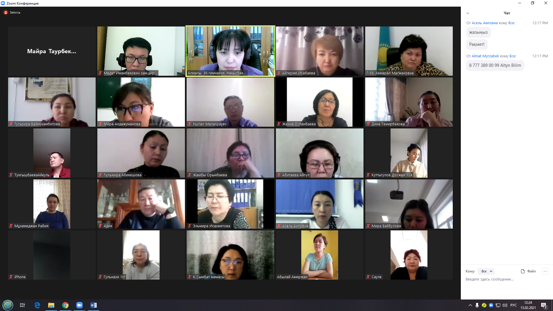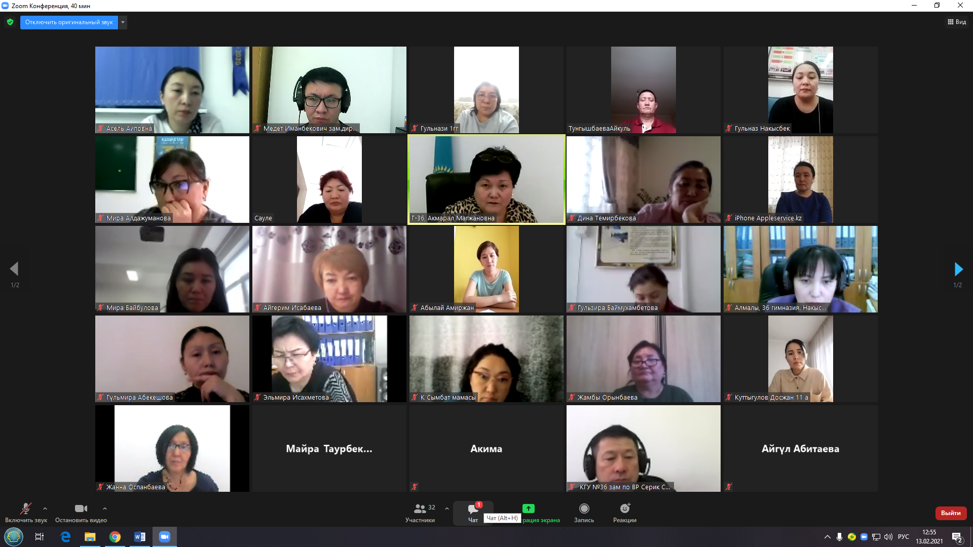Осы шараны жүзеге асыру мақсатында 2021 жылдың 13 ақпанында Б.Атыханұлы атындағы №36 гимназияда «Директорлық сенбі – ата – ана үні» онлайн кездесуі ұйымдастырылды.Ата – аналарға арналған онлайн – сұхбатқа – директор, директордың тәрбие ісі жөніндегі орынбасары, сынып жетекшілері, мектеп психологі, әлеуметтік педагог және пән мұғалімдері қатысты. Онлайн-кездесуде мектеп әкімшілігі, сынып жетекшілері, пән мұғалімдері оқушылардың сабаққа қатысуы, үлгерімі, ҰБТ-ға дайындығы және оқушы тәртібіне байланысты өз ойларын айтты.Ал ата-аналар белсенділік танытып, көкейлерінде жүрген сұрақтарына жауап алып, өз ұсыныстарын және алғыстарын жеткізді. Кездесу соңында сөз алған гимназия директоры Ақмарал Мағжанқызы жиналысты қорытындылай келіп, бұл кездесу әр аптаның сенбісінде жалғасын табатындығын айтты. Жиналыс өз дәрежесінде өтті.