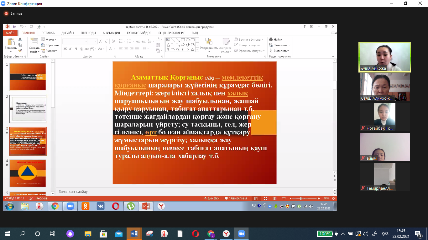 23 ақпан 2021 0 1 2 3 4 5 Азаматтық қорғаныс «Ұлттық қауіпсіздік» күніне арналған тәрбие сағаты Осы беттің QR-коды:QR-код этой страницы: