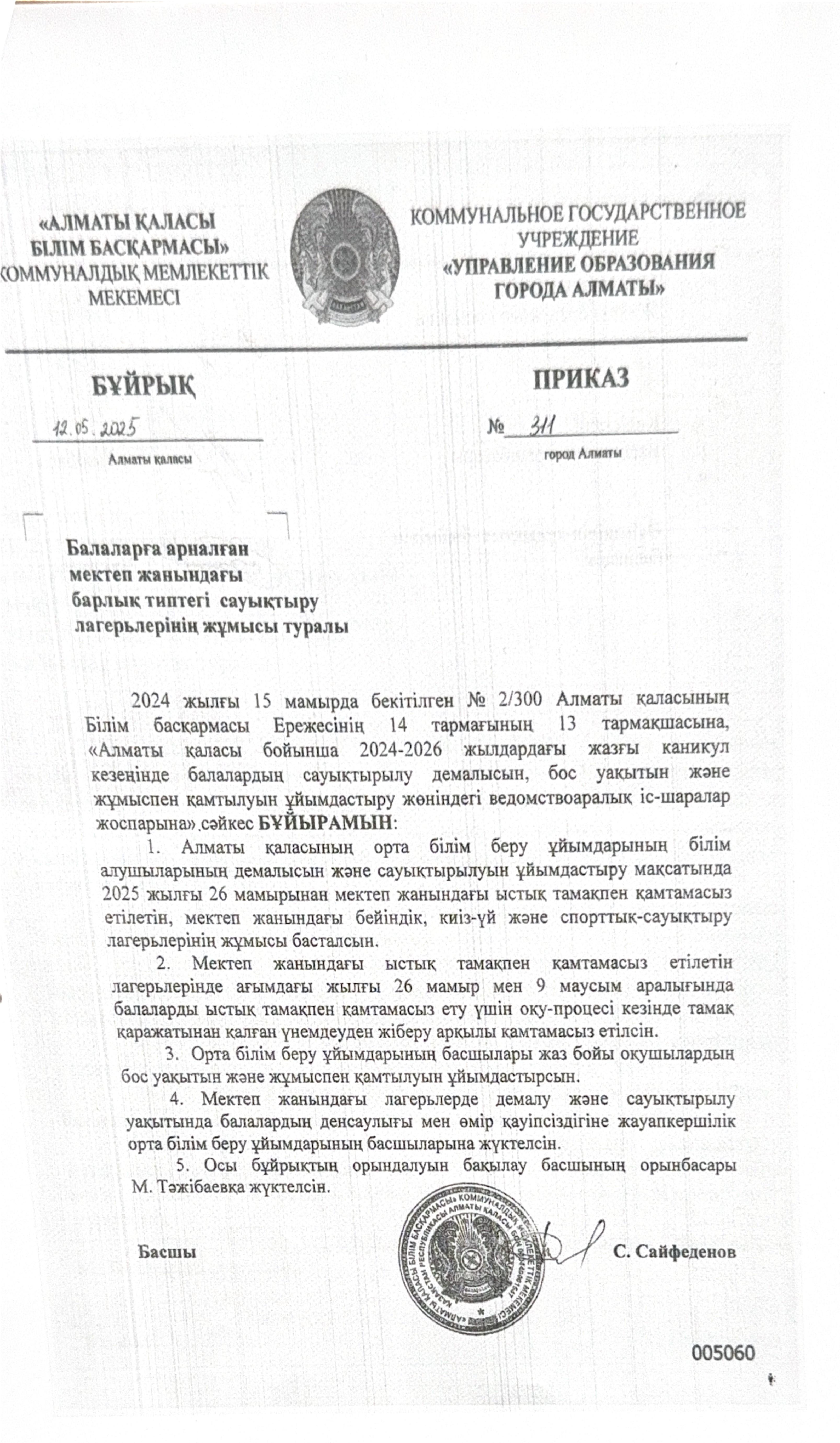 26 мамыр 2025 0 1 2 3 4 5 БҰЙРЫҚ №128 Мектеп жанынан "Балдаурен" тынығу лагерін ашу туралы Осы беттің QR-коды:QR-код этой страницы:
