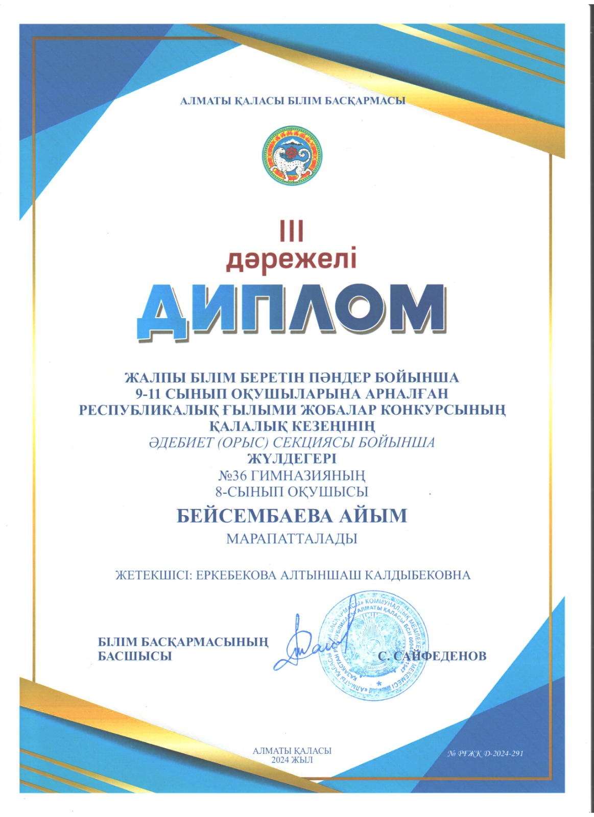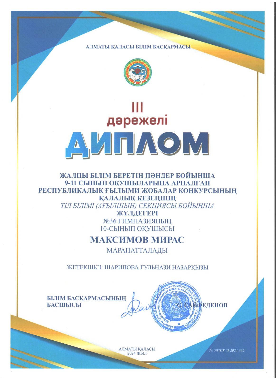 13 ақпан 2025 0 1 2 3 4 5 Жалпы білім беретін пәндер бойынша 9-11 сынып оқушыларына арналған республикалық ғылыми жобалар конкурсының қалалық кезеңінен орын алған оқушылар Осы беттің QR-коды:QR-код этой страницы: