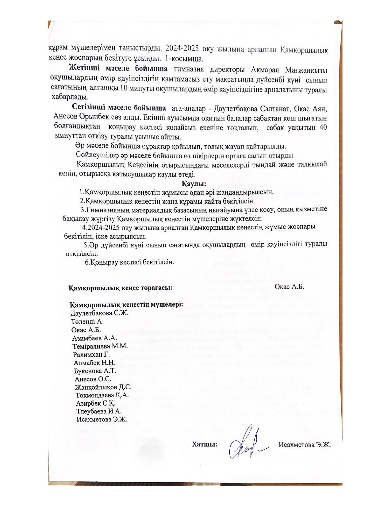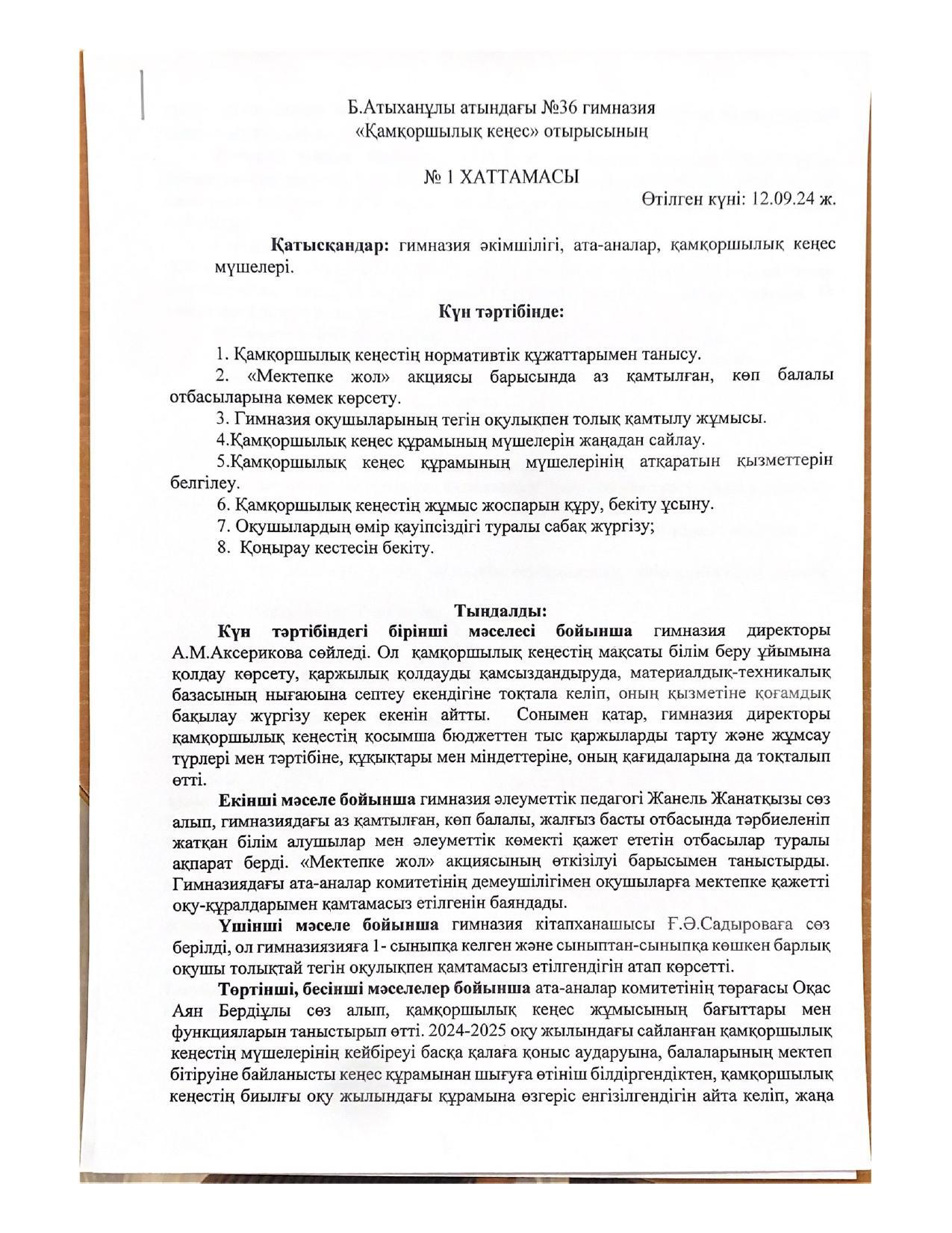Қамқоршылық кеңес отырысының №2 хаттамасы
