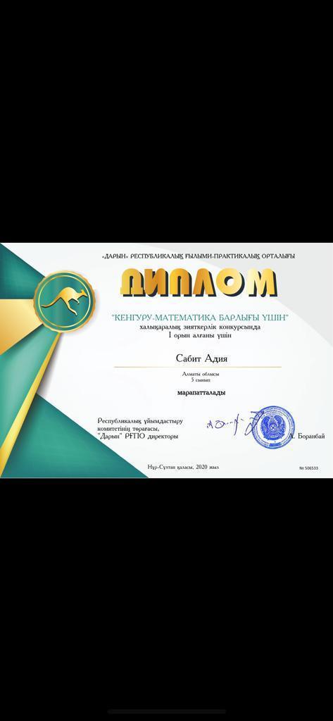 18 мамыр 2020 0 1 2 3 4 5 "КЕНГУРУ - МАТЕМАТИКА БАРЛЫҒЫ ҮШІН" халықаралық зияткерлік конкурсының жүлдегерлері Осы беттің QR-коды:QR-код этой страницы: