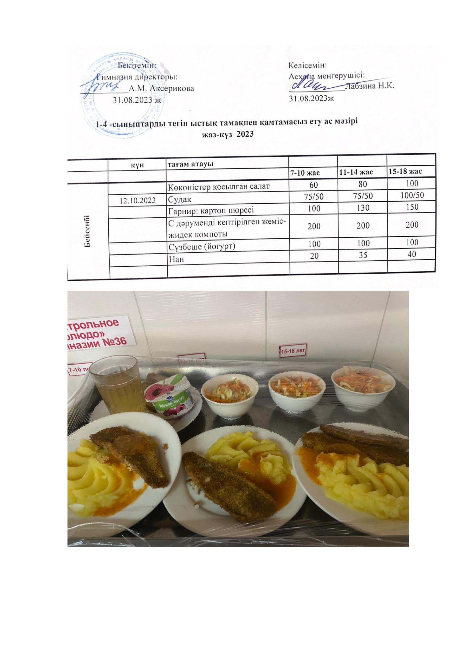 Тамақтандырудың ұйымдастыру жұмыс жоспары 2024