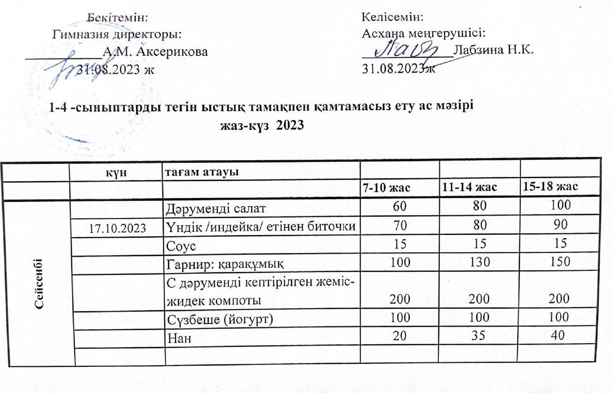 Тамақтандырудың ұйымдастыру жұмыс жоспары 2024