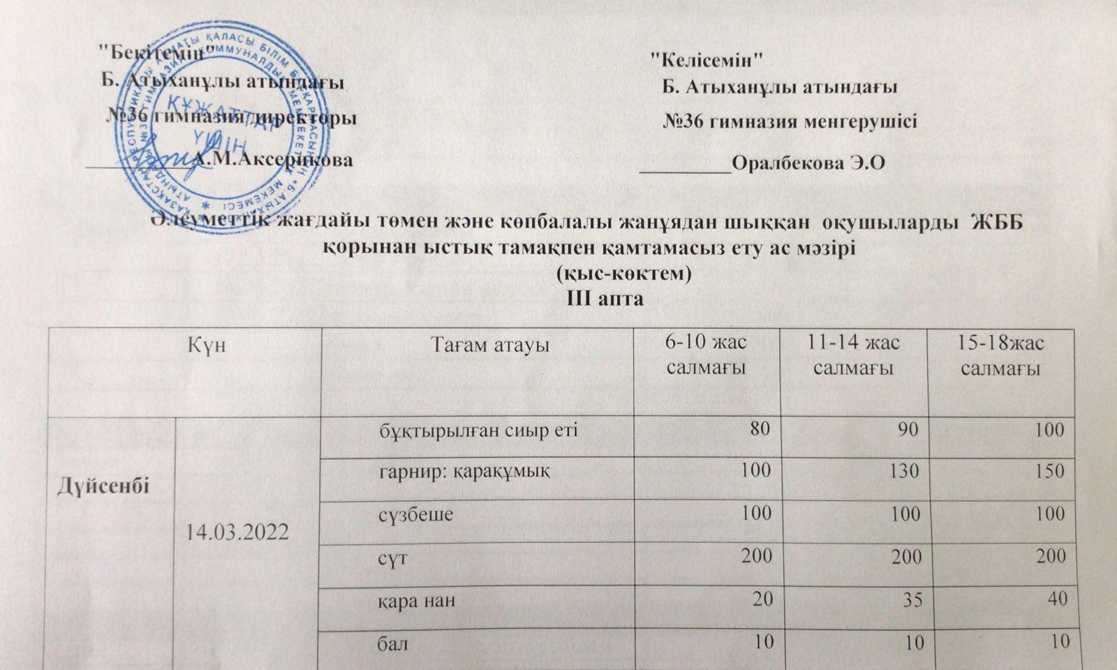 Тамақтандырудың ұйымдастыру жұмыс жоспары 2024