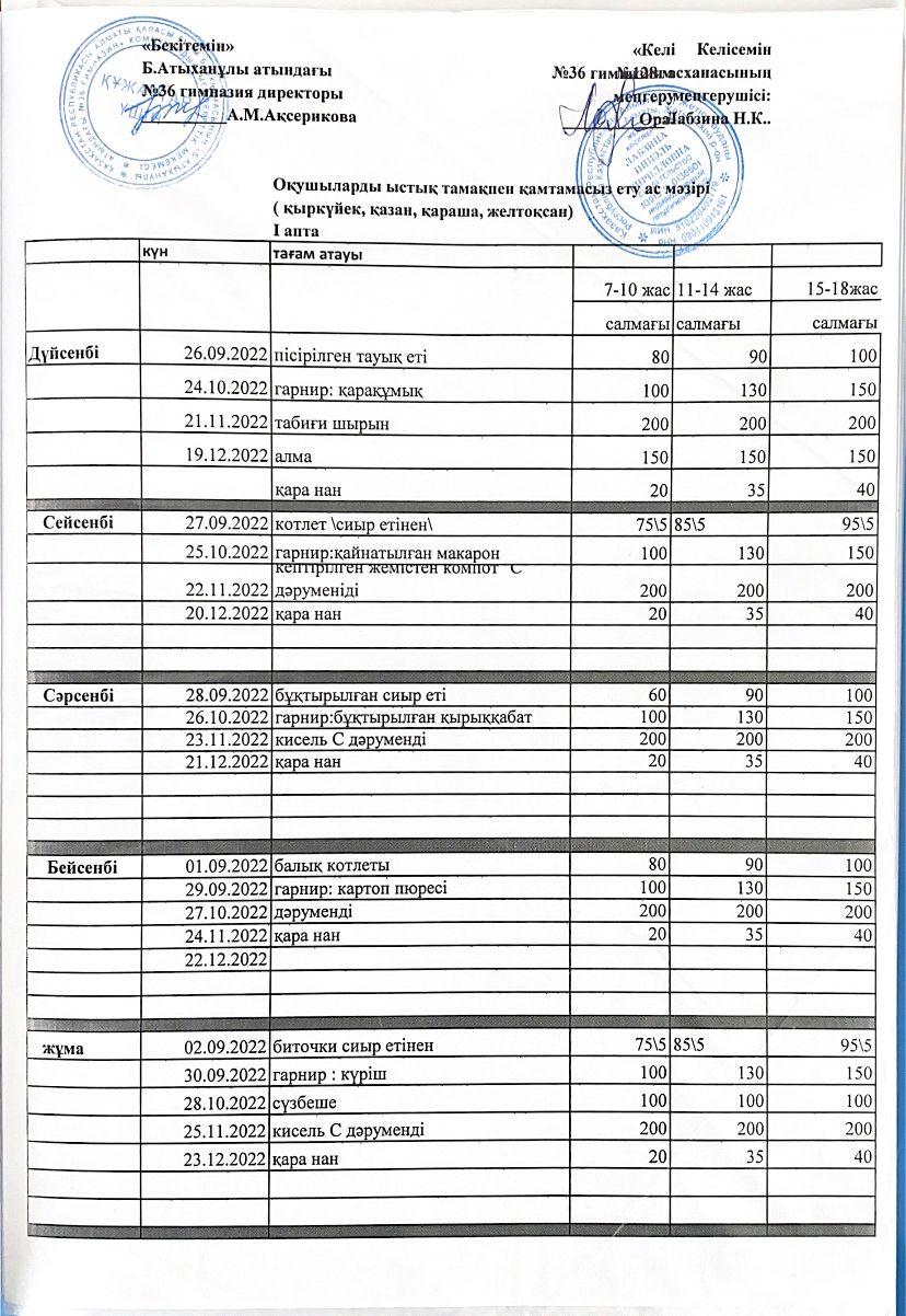 01 қыркүйек 2022 0 1 2 3 4 5 Тегін тамақтанатын оқушыларға арналған 4 апталық тамақ мәзірі Осы беттің QR-коды:QR-код этой страницы: