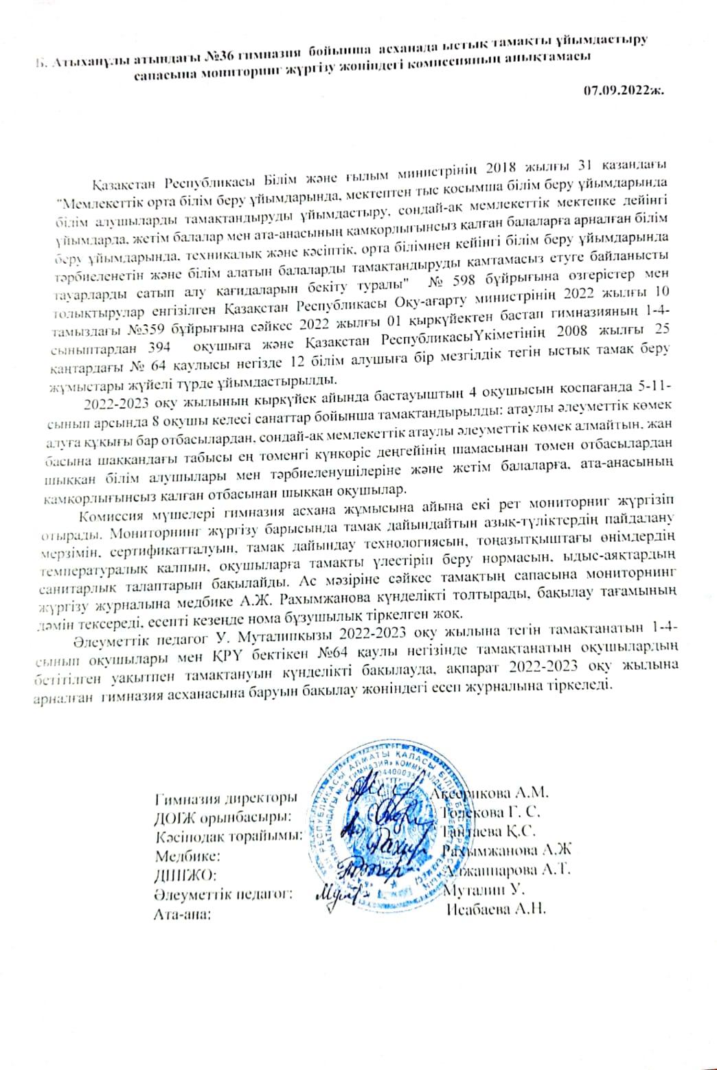 07 қыркүйек 2022 0 1 2 3 4 5 Анықтама. Тамақты ұйымдастырудың сапасына мониторинг жүргізу жөніндегі анықтама Осы беттің QR-коды:QR-код этой страницы: