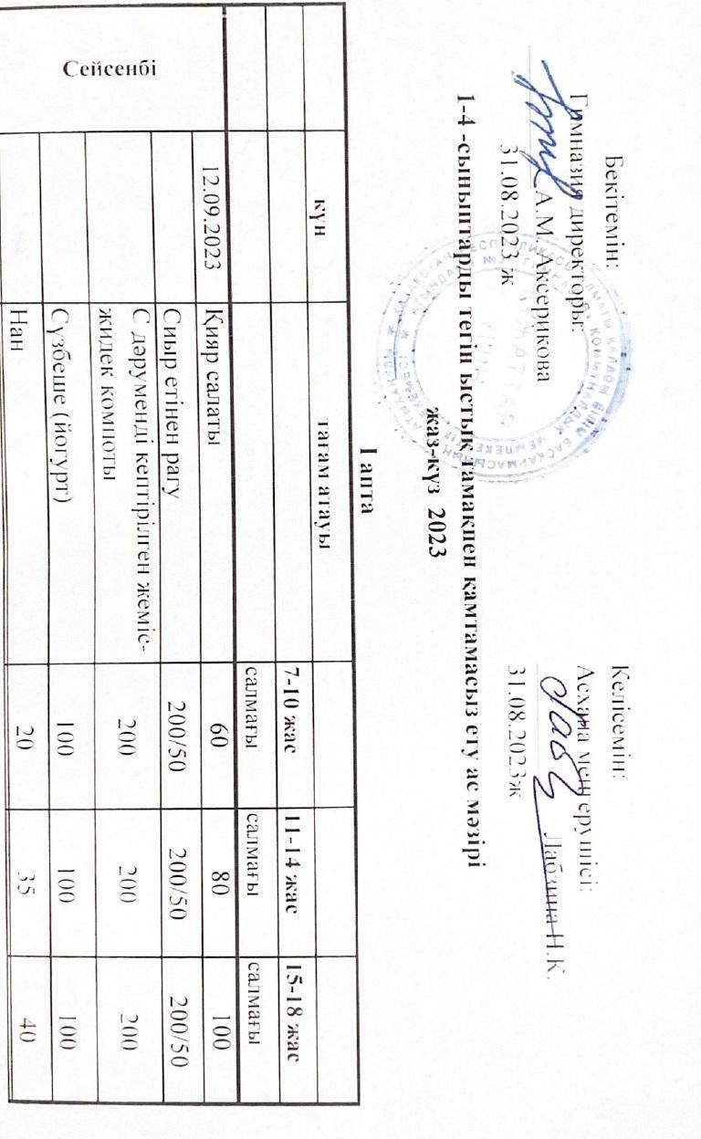 Тамақтандырудың ұйымдастыру жұмыс жоспары 2024