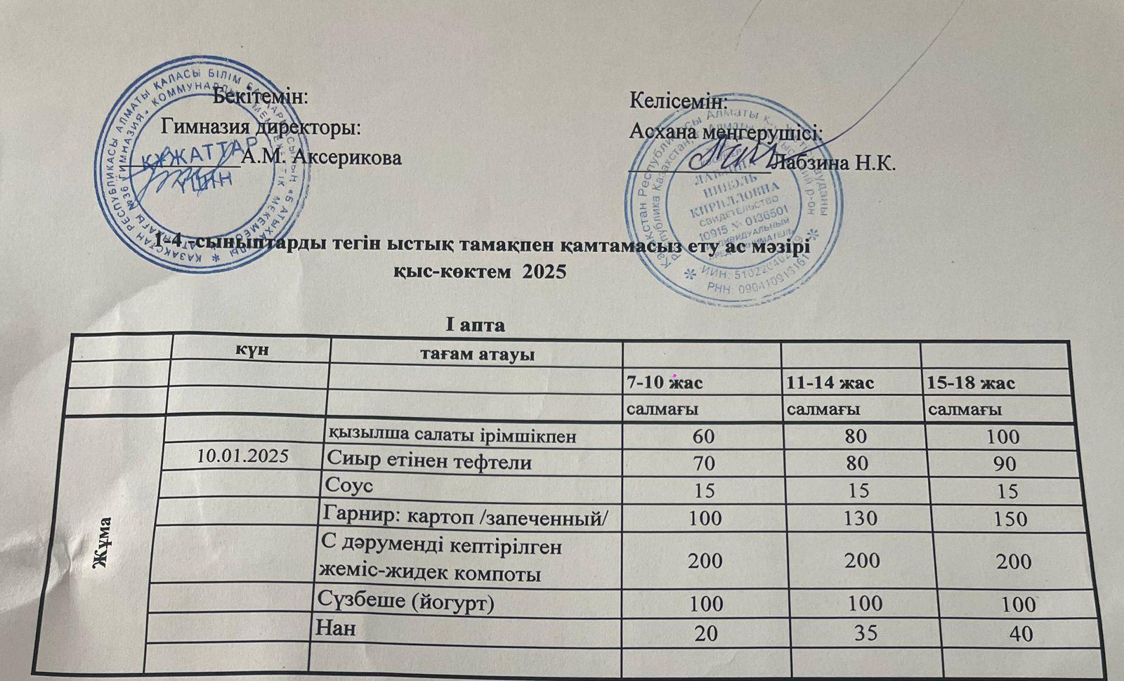 Ас мәзірі 2024-2025