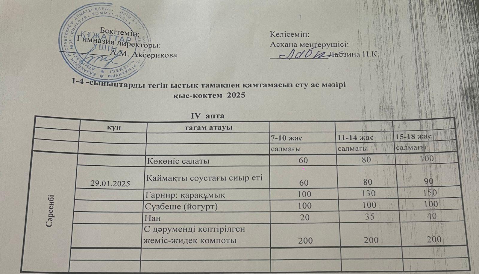 Тамақтандырудың ұйымдастыру жұмыс жоспары 2024