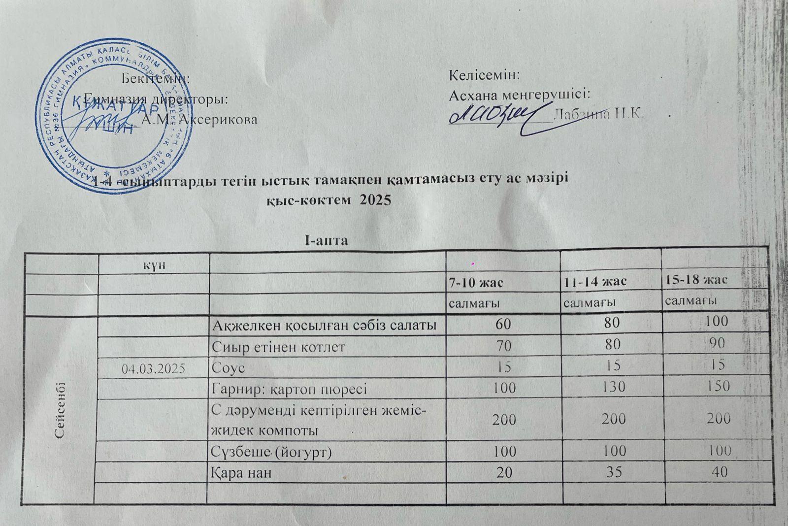 Тамақтандырудың ұйымдастыру жұмыс жоспары 2024