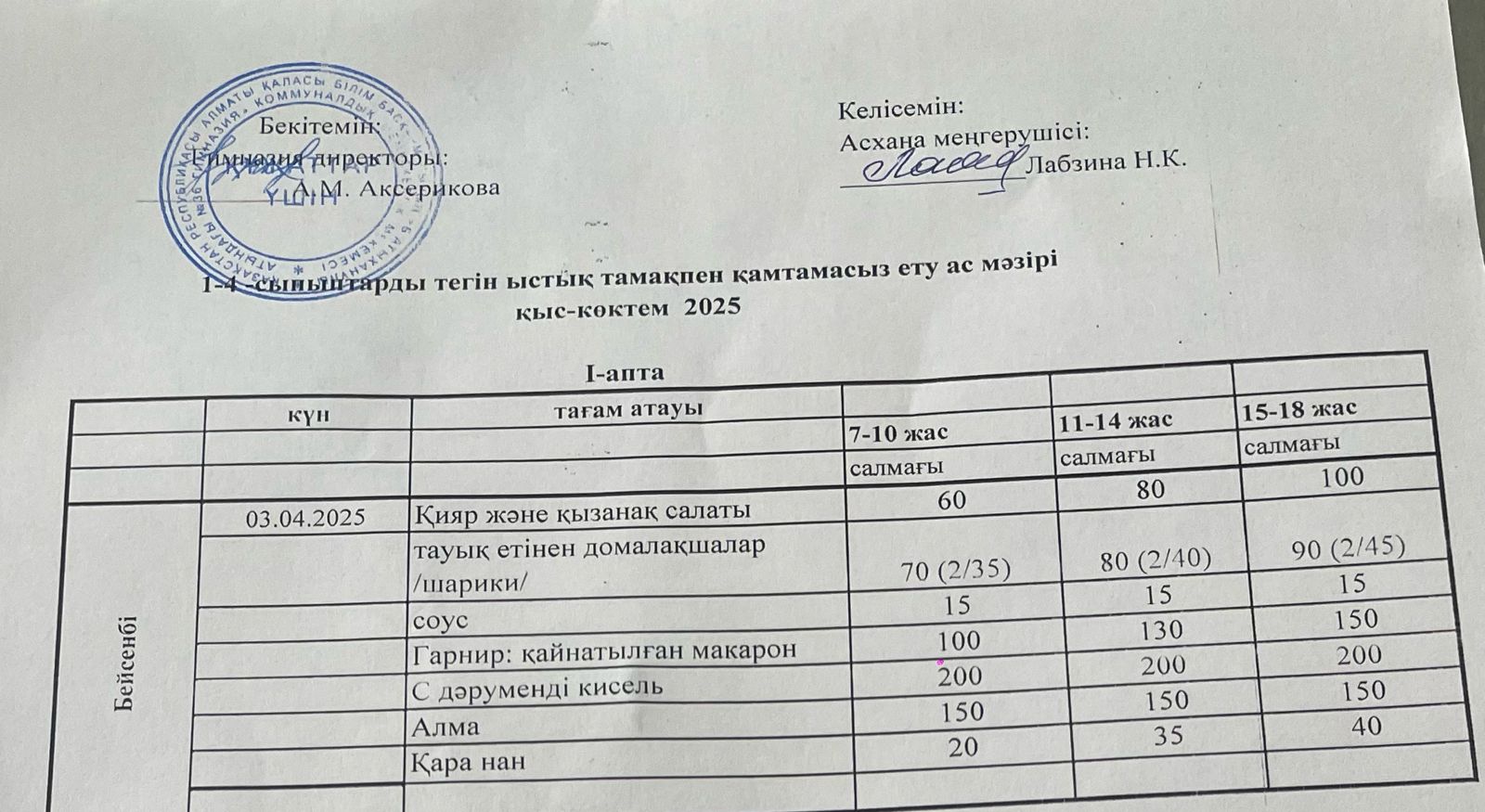 Оқушылардың ыстық тамақпен қамтылуын, асхана жұмысын тексеру нәтижесі туралы