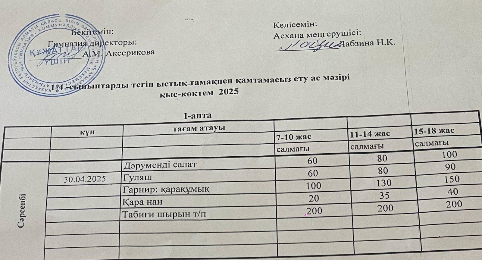 Ас мәзірі 2024-2025