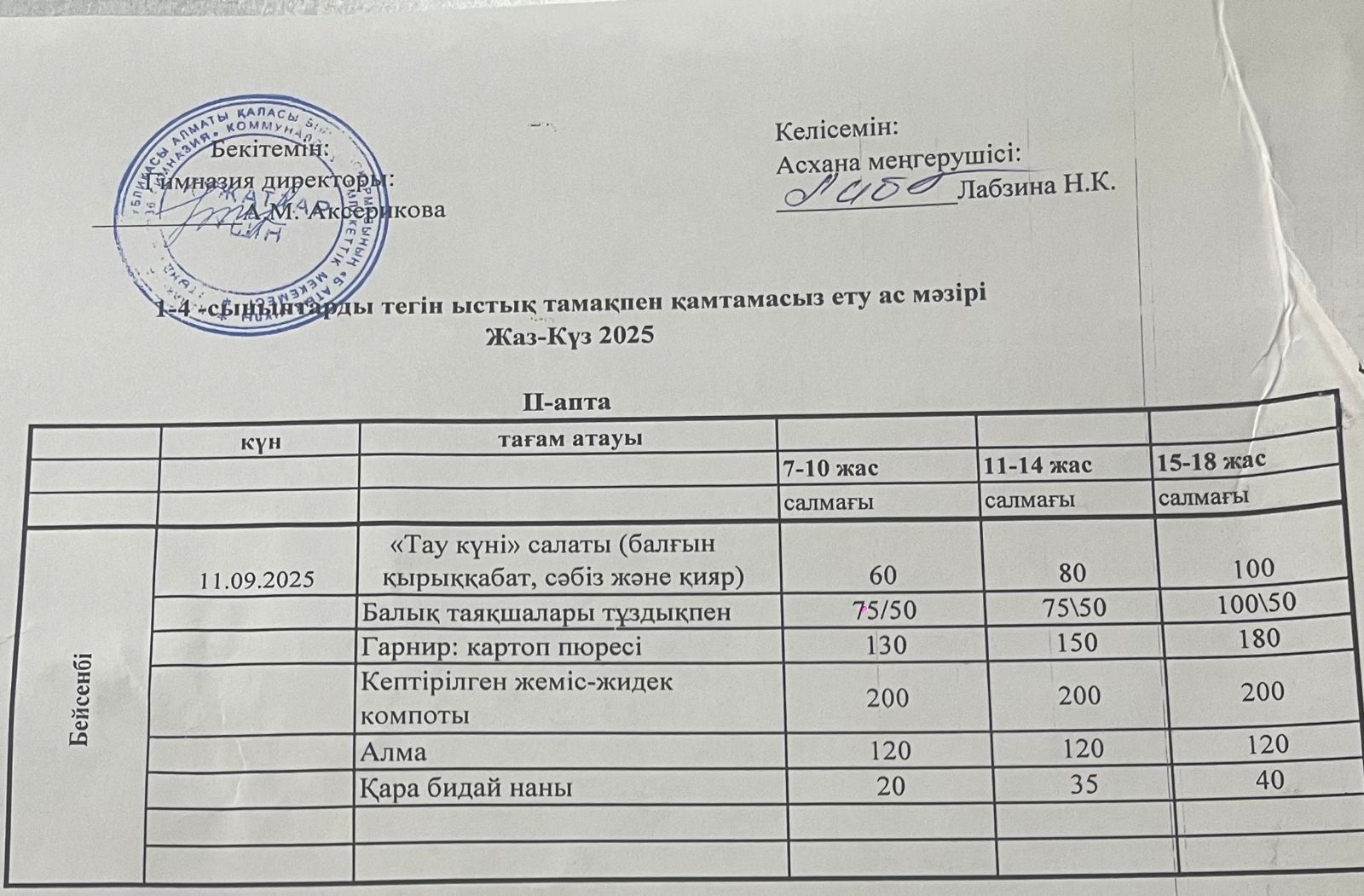 Ас мәзірі 2024-2025