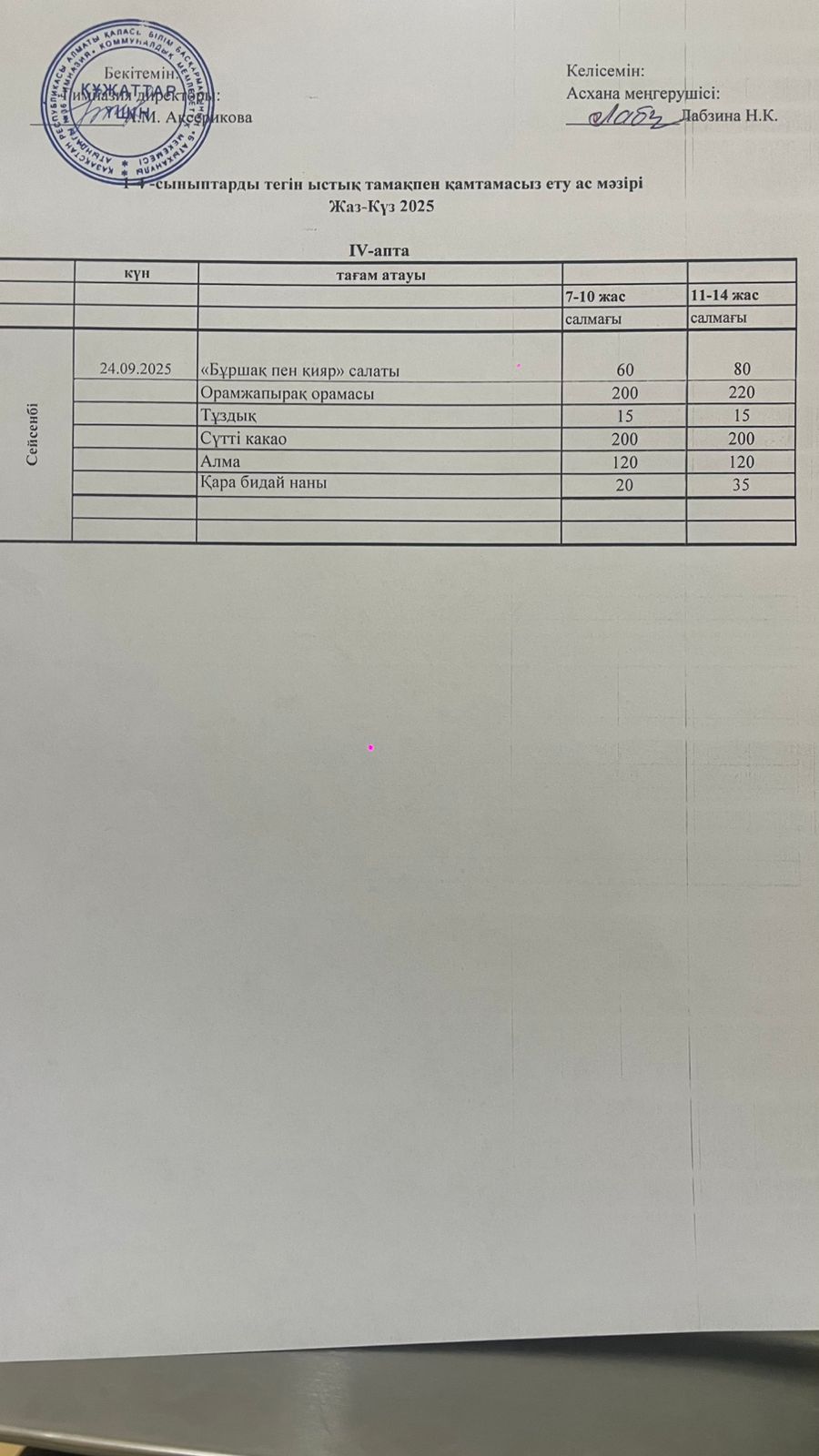 Ас мәзірі 2024-2025