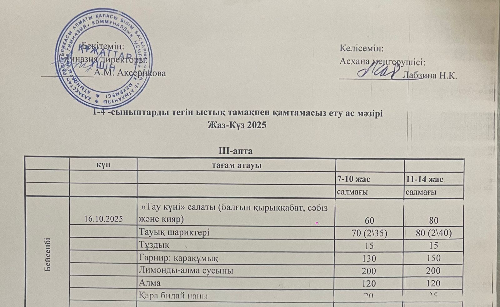 Ас мәзірі 2024-2025