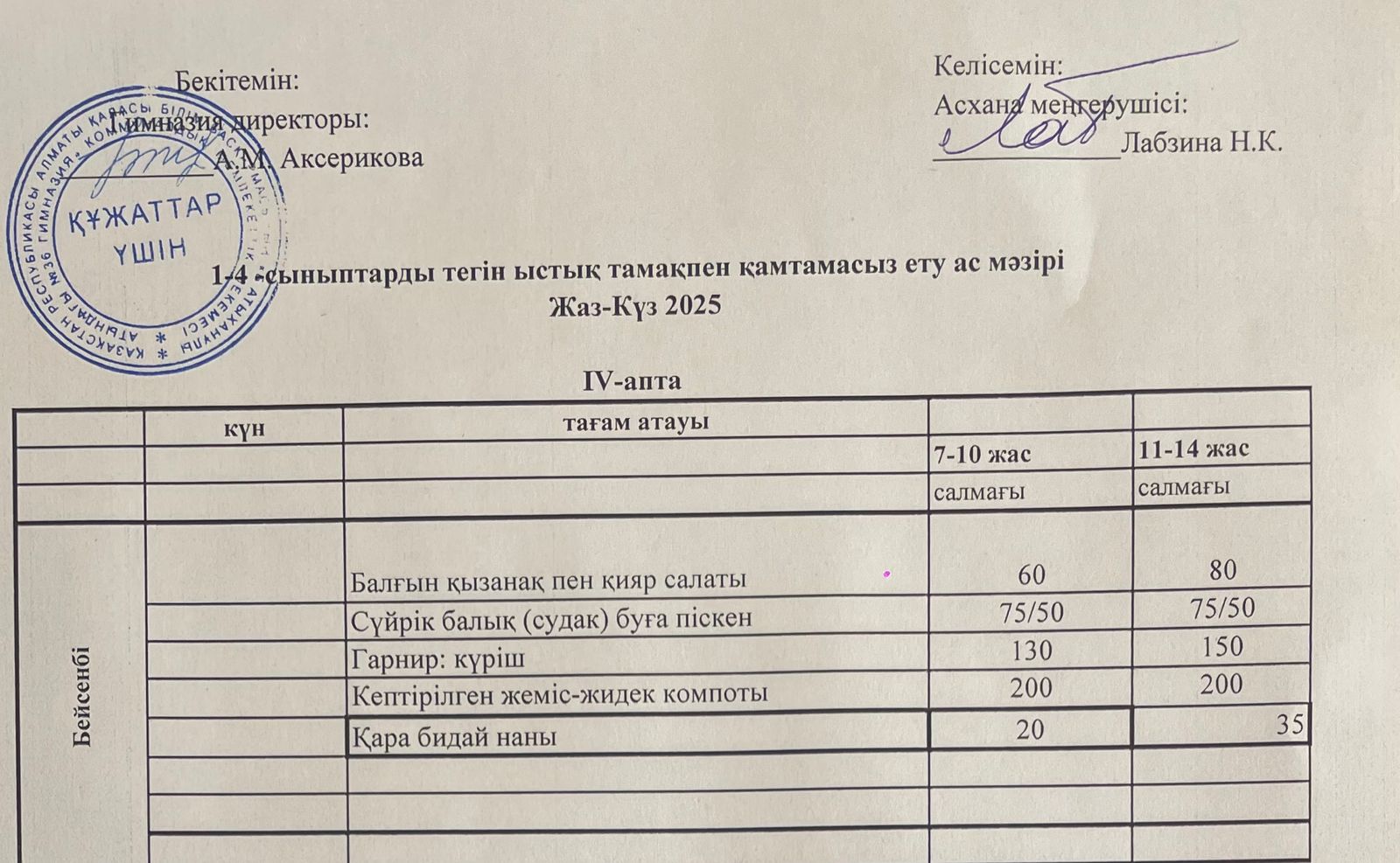 Тамақтандырудың ұйымдастыру жұмыс жоспары 2024