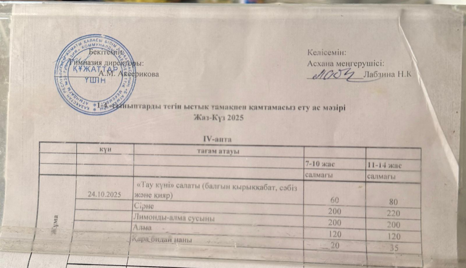 Ас мәзірі 2024-2025