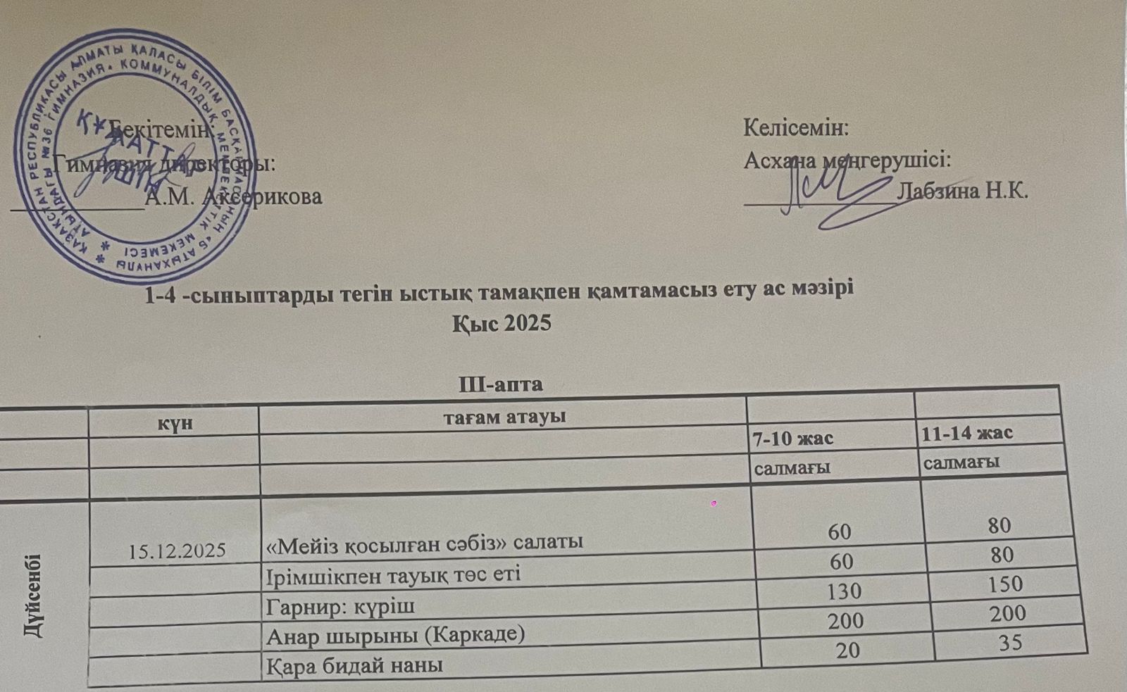 Тамақтандырудың ұйымдастыру жұмыс жоспары 2024