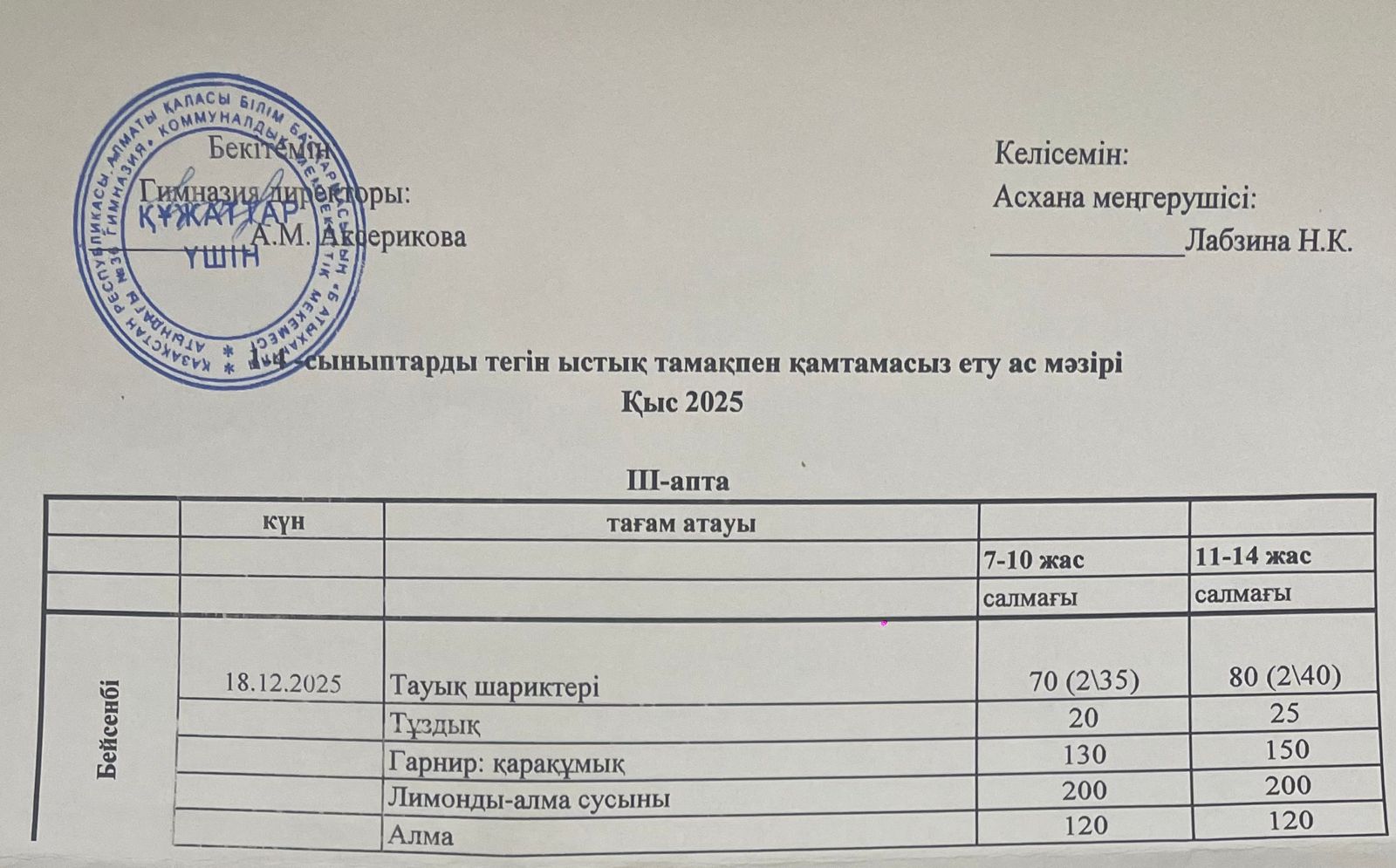 Ас мәзірі 2024-2025