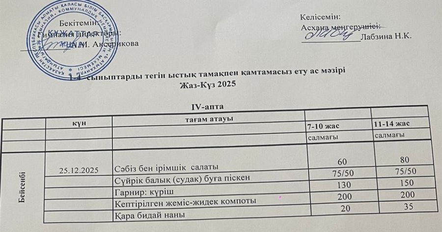Ас мәзірі 2024-2025