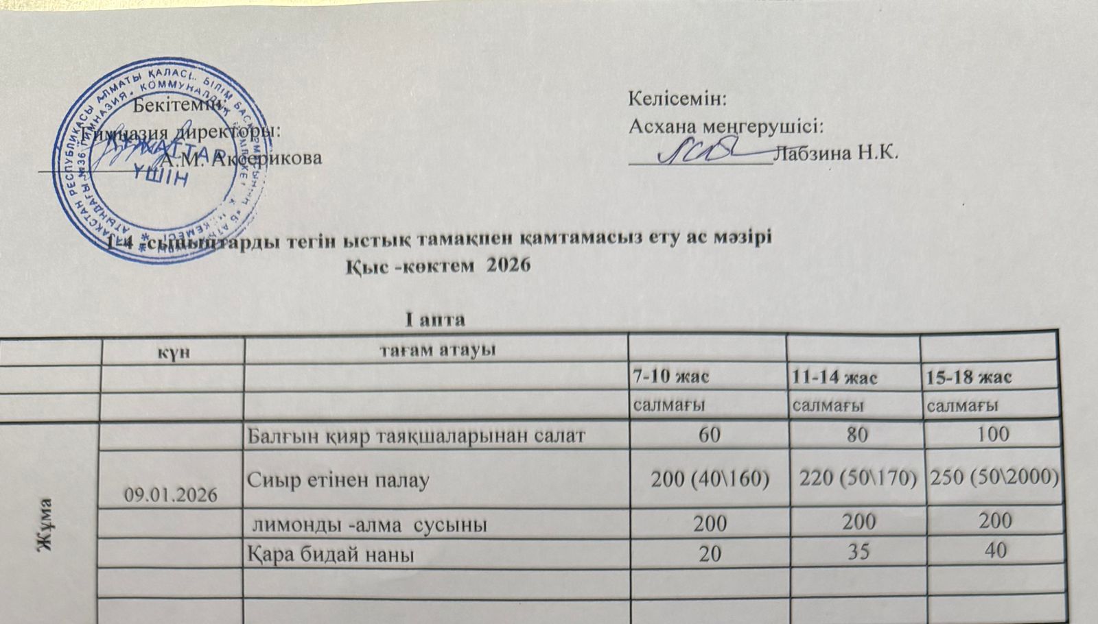 Тамақтандырудың ұйымдастыру жұмыс жоспары 2024