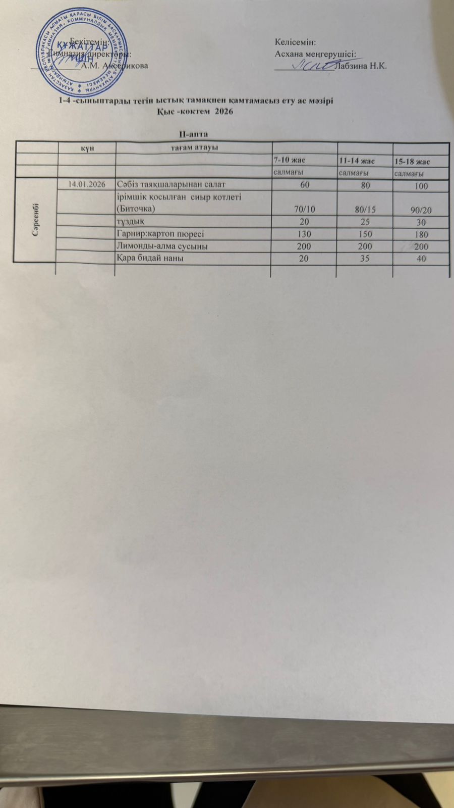 Тамақтандырудың ұйымдастыру жұмыс жоспары 2024