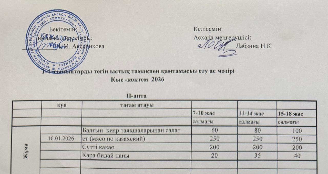 Тамақтандырудың ұйымдастыру жұмыс жоспары 2024