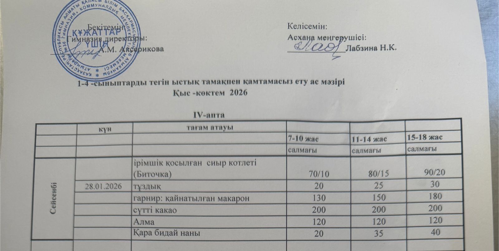 Тамақтандырудың ұйымдастыру жұмыс жоспары 2024