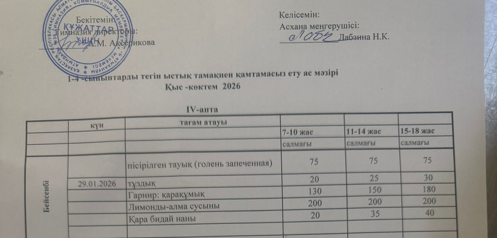 Тамақтандырудың ұйымдастыру жұмыс жоспары 2024