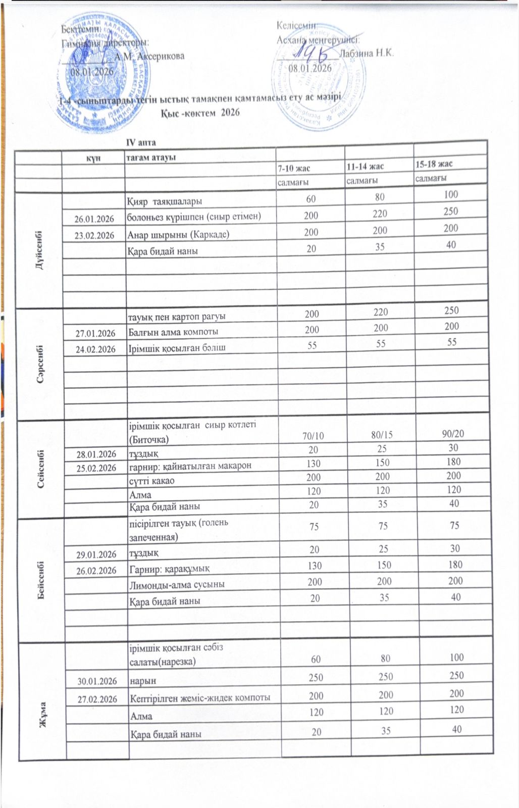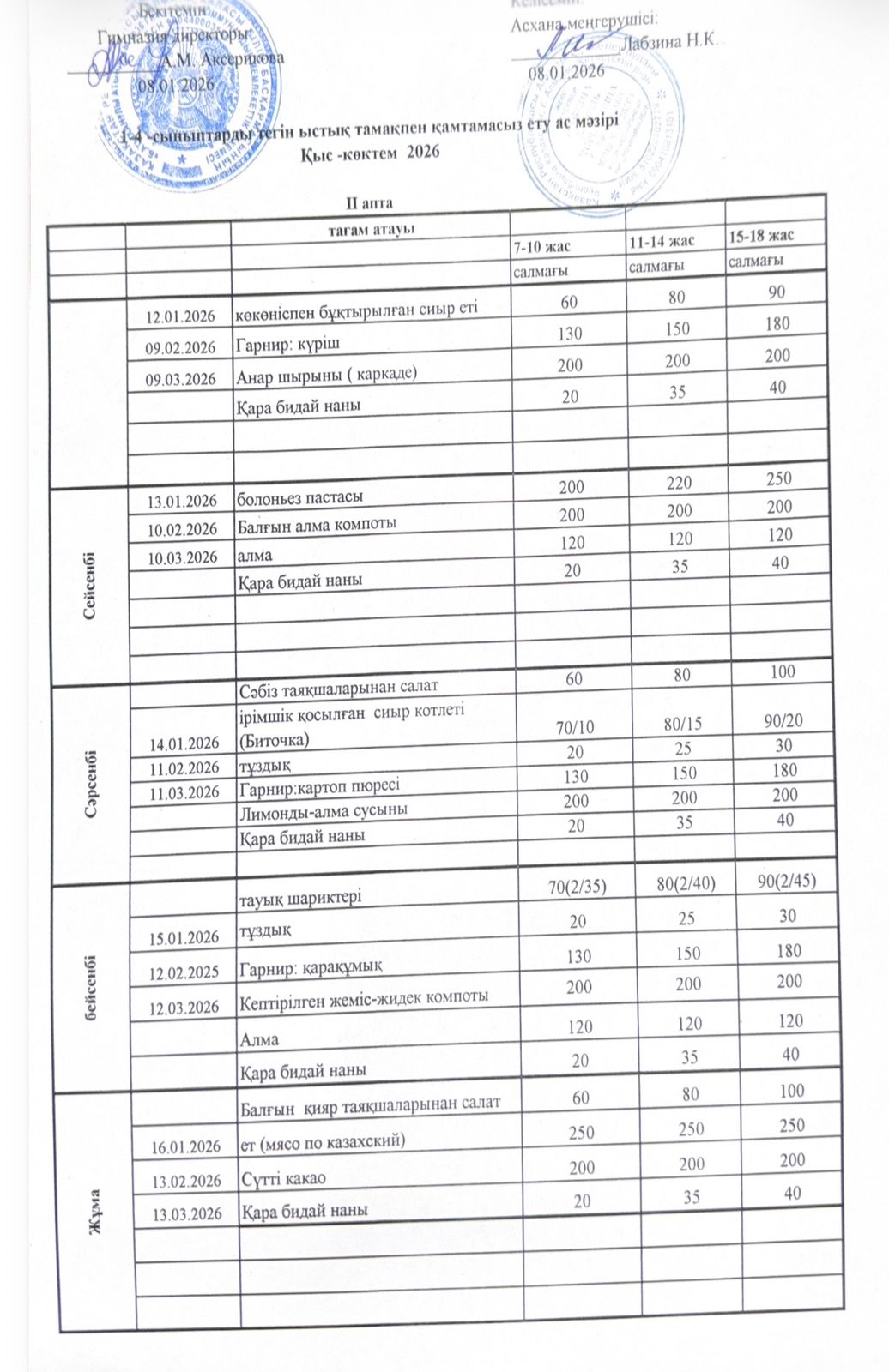 Меню 2025-2026 Қыс-Көктем