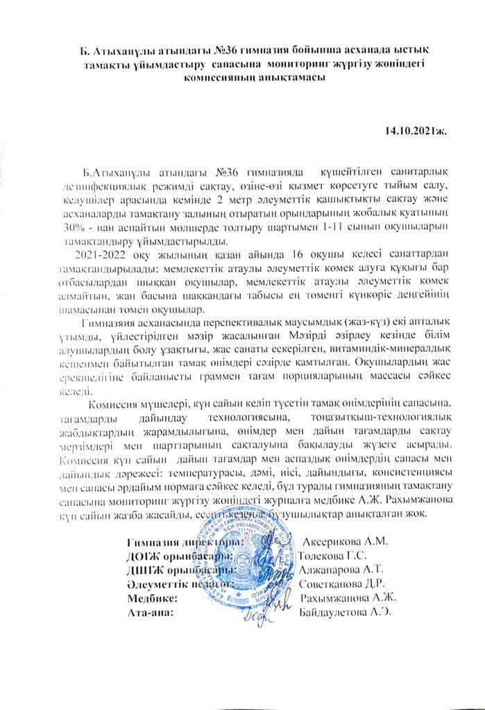 14 қазан 2021 0 1 2 3 4 5 Тамақтандыруды ұйымдастыру сапасына мониторинг жүргізу жөніндегі комиссияның анықтамасы Осы беттің QR-коды:QR-код этой страницы: