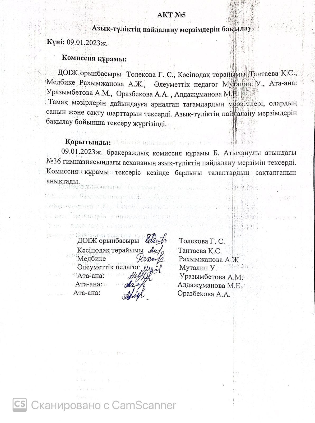 09 қаңтар 2023 0 1 2 3 4 5 09.01.2023 ж. АКТ №5 азық-түліктің пайдалану мерзімін бақылау Осы беттің QR-коды:QR-код этой страницы:
